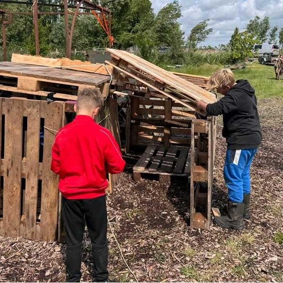 Van het bouwen van hutten tot het maken van gereedschap; kinderen ontwikkelen probleemoplossende vaardigheden en leren samenwerken in de buitenlucht.