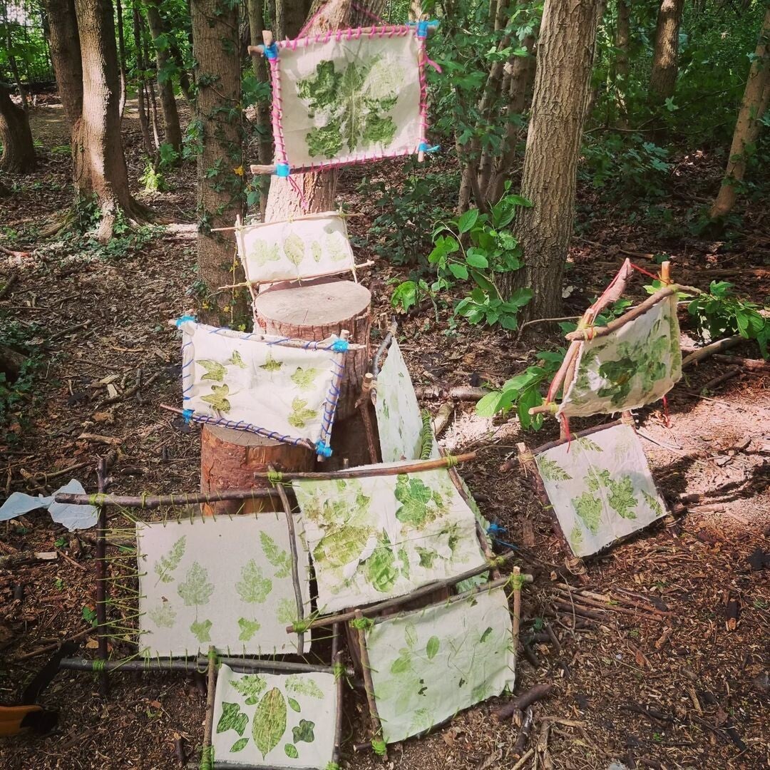Met natuurlijke materialen zoals takken, bladeren en wol uiten kinderen hun creativiteit, bijvoorbeeld door te weven of te schilderen met aarde en bessen.